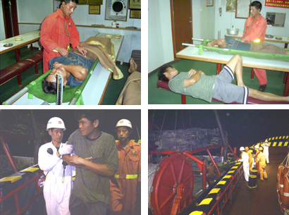 2007年9月1日,位于汕头东南约60海里的渔船“珠香1691”2名渔民胸部被钢缆打伤,伤势严重,请求救助。