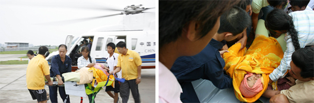 救助直升机B-7304迅速从三亚机场起飞,飞抵西岛后,争分夺秒将孕妇接上飞机,十多分钟后安全降落机场,将孕妇交“120”送三亚人民医院治疗。