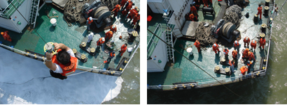 由于参与灭火的几艘港作拖轮灭火功能有限,遇险船船上部分船员仍处于危险中。1007时,局救助指挥值班室指令“南海救131”轮从琼州海峡启航前往现场施救,为争取时间,同时指派救助直升机B-7119起飞前往救助现场;1小时后,第一批8名遇险船员被救起并送至湛江坡头机场,其中4名受伤人员立即移交120救护车送往南油医院救治;救助直升机B-7119第二次返抵现场救人时,由于大火已被扑灭,剩余船员已无恙,B-7119返航湛江机场;“南海救131”轮则中途返航海安值班待命。