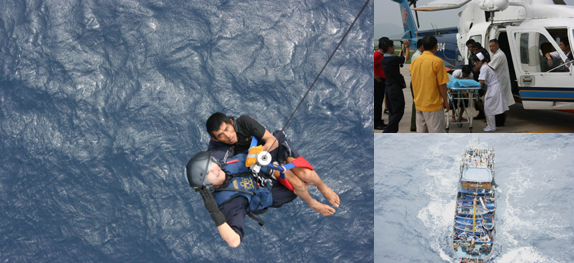 直升机B-7304救接患潜水病渔民