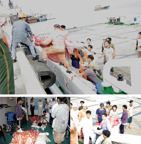 2008年3月14日1030时,一艘越南籍渔船“DN7031”在西沙东岛东北约70海里处,船上燃气瓶爆炸,两人严重烧伤,1人失踪,伤者与其他遇险渔民已被附近越南渔船“DNA66192”救起。