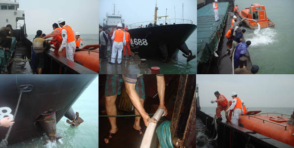 0720时,“南海救112”轮的救助快艇抵靠“仕泰688”,送上潜水泵进行排水。根据救助需要,0735时,救助快艇返回“南海救112”轮装运更大功率的潜水泵再次前往“仕泰688”排水,同时“南海救112”派出大副等救援人员到“仕泰688”轮指导对方开展堵漏、排水工作。由于有效的排水与堵漏,救援工作效果明显,使“仕泰688”轮转危为安,1400时,救助任务圆满结束。