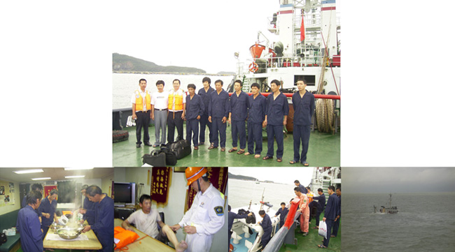 在给7名救获船员疗伤后,7日0810时,在闸坡港锚地交给前来接应的船只。
