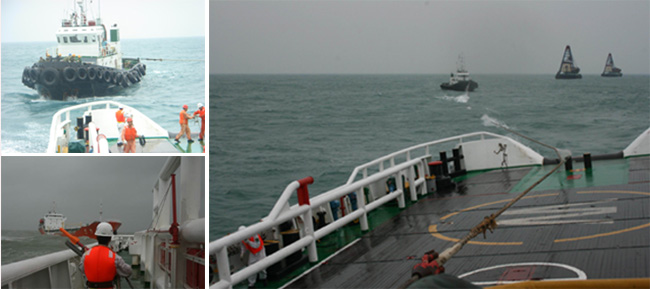 1110时,我局指令“南海救131”从海安值班点起航前往施救。“南海救131”无畏“北冕”袭击,1420时抵达救助现场,经过近1小时的紧张施救作业,将主拖缆带上“FALCON 17”轮,7日0925时,“南海救131”轮将遇险船组拖抵海口2号锚地,遇险拖驳船组成功获救。