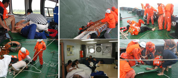 当天下午,经过9个多小时的搜寻,通过“B-7119”的准确定位,“南海救197”运用专业救助器材和娴熟的搜救技巧,在距事发地点10海里处发现并成功将13名遇险人员从海中救起,其中1人救起后证实已经死亡。“B-7120”也在反复搜寻中发现并救起1人,再从“南海救197”接走1名被救获的骨折伤者。