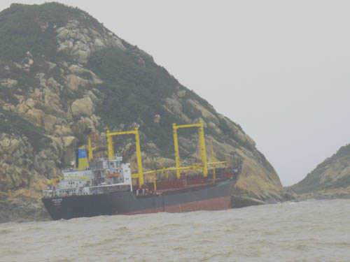 救助指挥值班室立即指令“南海救111”轮从珠江口迅速出动。随后,值班室向遇险船了解到:因0814号台风(黑格比)影响,遇险船漂移的速度很快,锚链全断;0115时已搁坐在高栏蚊洲岛南边的礁石上,船体出现倾斜,0220时海水已浸没至主甲板,情况危急,全部遇险船员已穿好救生衣在驾驶台待救。