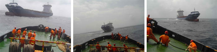 “南海救195”迅速从桂山锚地出发,冒着东北风8级,大浪的恶劣海况赶往现场救助,27日0900时发现遇险船并立即展开接拖施救工作,于28日凌晨将其安全拖抵香港南丫锚地,10名船员同船获救。