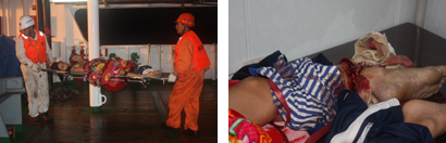 “南海救113”轮、“华英382”艇接力救1名左腿被锚机打断的渔民