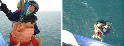 0712时,救助直升机“B-7120”从湛江机场起飞前往救助,抵达现场迅速接上受伤渔民,0833时返抵湛江,将受伤渔民交“120”救护车送院救治。