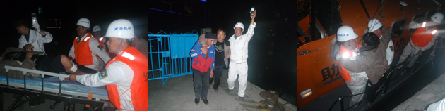 在桂山值班的“华英382”艇接信息迅速出动,接上患者及1名医生后立即航往珠海;2135时将伤员送抵珠海香州交120救护车。