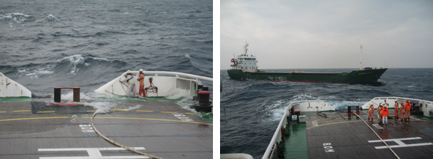 1835时,“南海救111”轮接指令从永兴岛起航,顶着东北风8级,阵风9级,浪高4米的恶劣海况赶赴现场,于27日0730时抵达遇险船现场,此时,遇险船已从原事发点向西南方向漂移了45海里,“南海救111”立即展开接拖施救,0845时一举接拖成功;28日0002时安全将“CHENG LU 7”拖至海南三亚港外3#锚地,圆满完成救助任务。