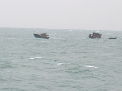 经广东省搜救中心协调,在遇险渔民同意弃船的情况下,0908时救助直升机“B-7120”再次从湛江起飞,0925时到达事发现场,但遇险渔民仍不肯弃船接受救助,救助直升机再次折返。