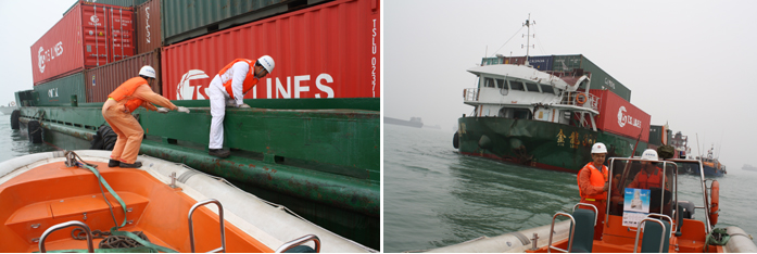 “南海救502”艇、“华英385”艇护航集装箱船“金龙381”
