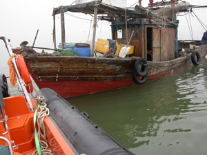 遇险渔船;1115时,“南海救505”将遇险渔船