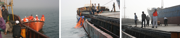 0630时“南海救197”轮接局救助值班室指令从企沙港港外起航前往救助,0847时到达现场,立即施放救助艇至遇险船查勘,发现其货舱破损进水,机舱完好,船体仍处于漂浮状态;为保障遇险船人员安全,“南海救197”在现场守护。有关部门先后协调船舶和浮吊为遇险船过驳,直至1542时,在确认越南货船经过驳卸货,人、船安全的情况下,救助船结束守护。