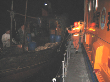 头出动救助;2030时抵达现场找到遇险渔船;2215时将其安全拖抵