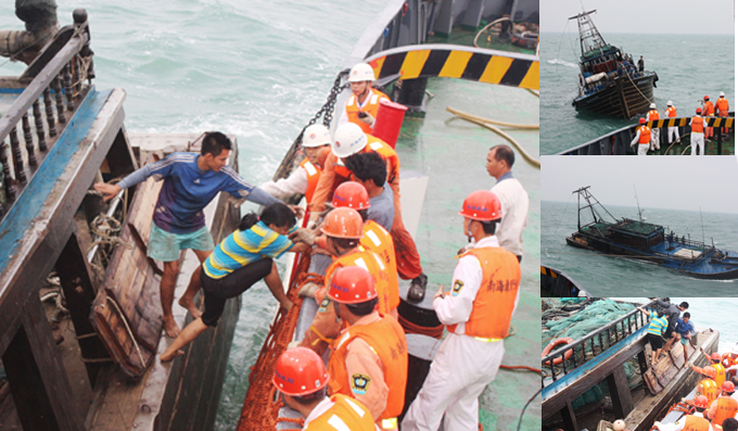 “南海救159”轮在即将沉没的渔船中救出9名遇险渔民