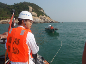 2011年10月18日0920时,钓鱼船“粤珠海73039”在桂山岛以西2海里左右的赤滩附近主机故障,艇上2人,请求救助。