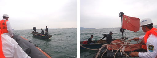 1640时,“南海救506”艇从从桂山岛值班点赶往现场。