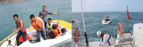 2012年1月14日1220时,5名游客(1名女性)驾驶无名游艇在三亚大东海外游玩,因主机故障无法返航,请求救助。
