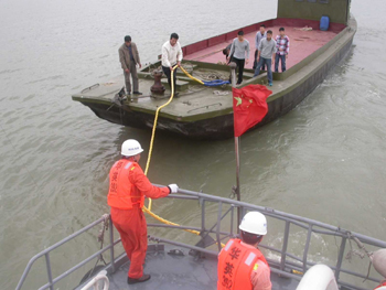 2012年2月11日1145时,1艘无名小货船在汕头港外防波堤附近发生机器故障、失控漂移,8名船员遇险,请求救助。
