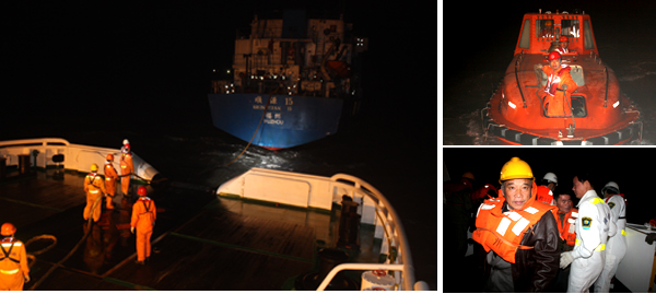 局救助值班室立即电话遇险船核实获悉:该轮已经沉没,4名船员在翻扣的船底上待救,另外4人落水失踪,随指令“南海救113”轮立即从南澳出动救助。2233时,“南海救113”在距离遇险船0.8海里处时接到待救的4名遇险船员已被附近船舶救起的信息,“南海救113”转而投入搜救4名落水失踪人员。
