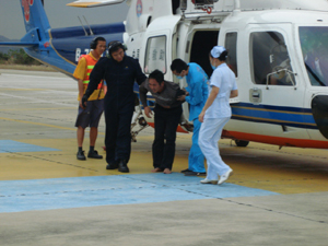 1505时,救助直升机“B-7304”从三亚前往救助。1548时飞抵现场立即接救患者。1653时直升机“B-7304”安全降落三亚,患者交“120”救护车。