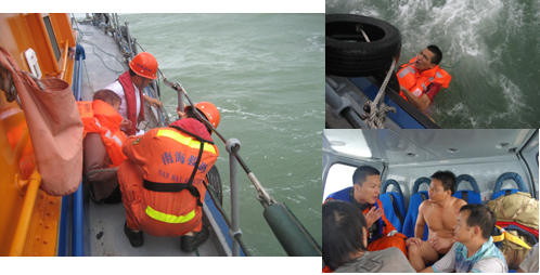 1020时,救助直升机“B7120”在海面发现坠海漂移的船员,1040时从海中救起4名遇险船员后因油料不足,返航湛江。
