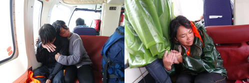 1330时,“B-7304”再次前往搜寻,1502时救助直升机在一个小岛礁上搜寻到2名呼救的遇险人员,立即展开施救, 1516时“B-7304”将救获的2名遇险人员安全送至三亚机场。经确认:救获的2名遇险人员是昨天失踪的无名渔船上的渔民夫妇。