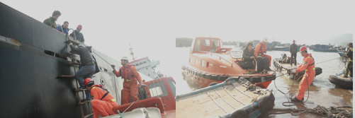 1401时,局救助值班室指令“南海救113”立刻出动实施救助。“南海救113”主动与“谊和9号”取得联系,商定救助方式:由“谊和9号”驶近距“南海救113” 1海里处的下风舷,施放救助艇前往接人。