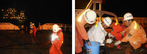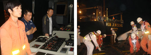 2013年1月24日1605时,满载6万吨铁矿的巴拿马籍货船“华锦松”轮(225×32米),从香港航往广西防城途中,在琼州海峡西口灯楼角东南约4海里处搁浅,同时对附近的海底电缆造成威胁,船上28人(26名中国人,2名缅甸人),2322时,“华锦松”轮正式请求我局派救助船施救脱浅。