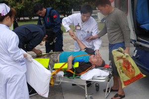 1027时“ B-7119”安全降落湛江坡头机场,将伤者送往湛江南油医院救治。