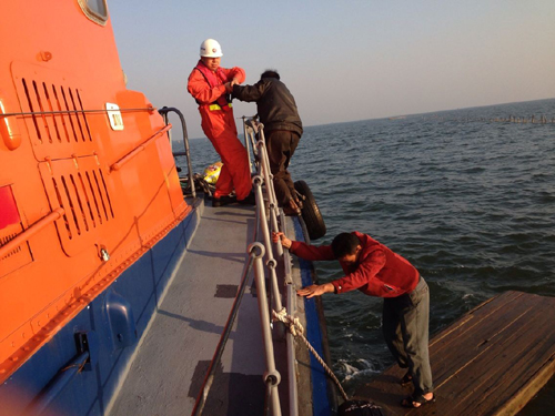 北海基地接信息立即指派“华英396”艇出动救助。0816时,“华英396”抵达事发现场,此时遇险渔船已沉没,2名渔民各自在漂浮的木板上待救,“华英396”迅速靠近将2名渔民救获,于0848时将其安全送至基地码头。