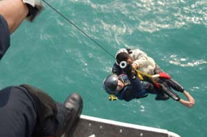 “南一飞”接报后,迅速从三亚调派救助直升机“B-7137”前往救助;1605时,“B-7137”飞至现场并将伤员接获,1718时安全返抵三亚机场;受伤人员交120救护车送往三亚农垦医院。