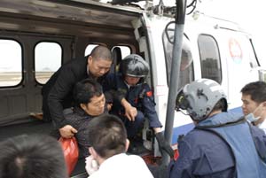 1158时,救助直升机“B7136”从珠海起飞前往救助,1300时抵事发海域,成功接上遇险渔民;1345时,“B7136”安全降落珠海,患病渔民交120救护车送往医院救治。