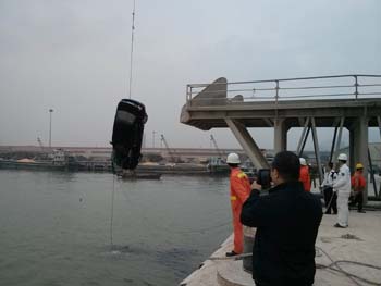 深圳基地接信息后,应急小分队一行5人迅速出动,0644时赶到现场,潜水员即下水探摸。0800时,成功探摸到轿车,并将其打捞出水(司机已无生命迹象)。
