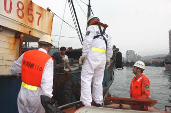 “南海救113”轮护航主机故障、船体进水渔船