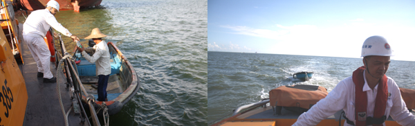 深圳基地接信息迅速调派 “华英385”艇携1名志愿者出动;1630时抵达现场展开接拖;1720时将遇