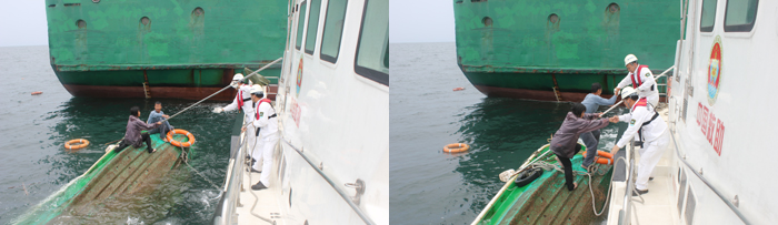 1350时,“南海救302”寻获翻扣渔船,并将2名在翻扣船底上的遇险渔民救上救助艇,及时给予充饥及饮水。1510时“南海救302”抵靠基地码头,将2名获救渔民送交其家属。