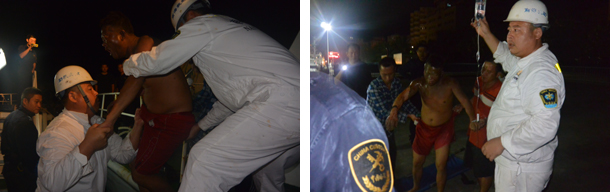 由于桂山岛卫生院条件有限,无法对伤员进行彻底救治。0055时,“南海救506”艇员再次协助把3名伤员护送到海关船,由海关船自行安排转院治疗。