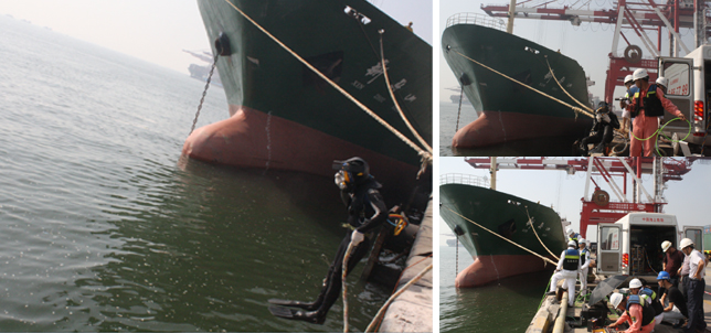深圳基地应急小分队为码头泊位船舶探摸