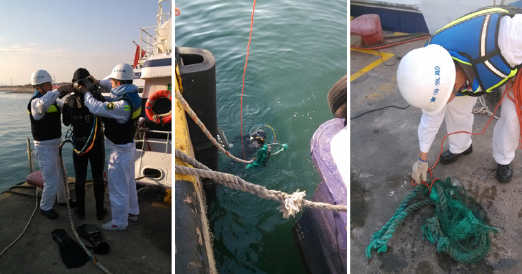 2014年12月2日、10日、19日,客船“迅隆贰号”和“迅隆壹号”在航行中分别发现主机有异常振动,怀疑螺旋桨被异物缠绕,请求派救助力量探摸、清障。