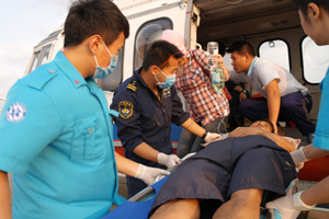 1409时,救助直升机“B-7137”起飞;1545时降落永兴岛机场,迅速接上患病渔民及陪同,返航。1755时,“B-7137”安全降落三亚海军机场,病人由425医院救护车接走救治。