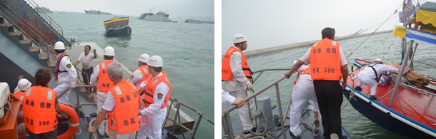 经核实信息后,北海基地指令“华英396”艇出动救助。1455时,“华英396”艇达到现场并搜寻到遇险船,首先将3名遇险人员转移至华英艇上,其后马上接拖遇险船。1617时将遇险船拖至北海港内港锚地交由“党江11”号浮坞修理,1人转移至浮坞,“华英396”艇将另外2人送往基地码头,1627时安全转移上岸。