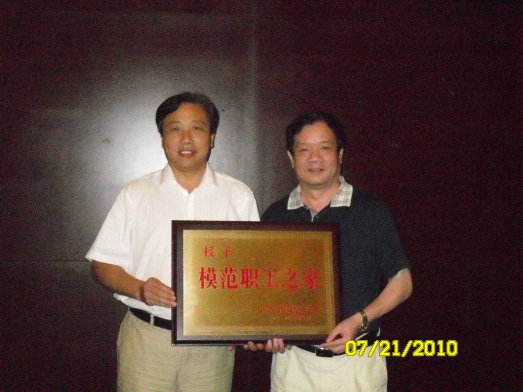 在7月21日省海员系统工会主席会上,广东省总工会党组成员、纪检组长廖汝捷同志将全总授予全国“模范职工之家”的牌匾颁给了南海救助局工会,我局工会主席朱伟桥同志代表领奖。(局工会)