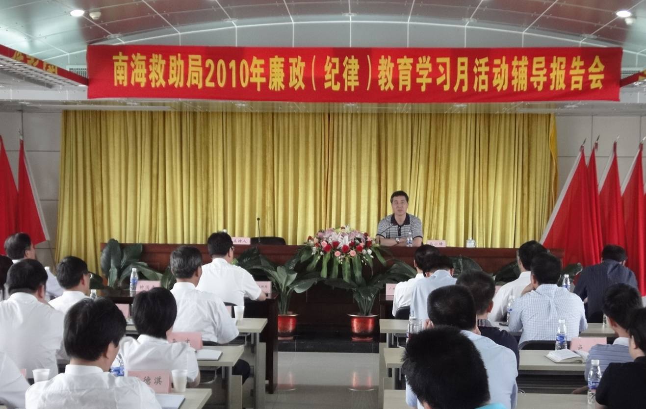 7月23日,驻部纪检组监察局马小峰副局长到南海救助局作廉政教育辅导报告。报告会由尹干洪书记主持,钟国青局长、朱伟桥副书记、吴辉副局长、我局驻海南、广西等二级单位党政负责人、广州地区副处以上领导、党员干部,广州打捞局和南海第一救助飞行队的领导和有关同志共100多人参加了报告会。