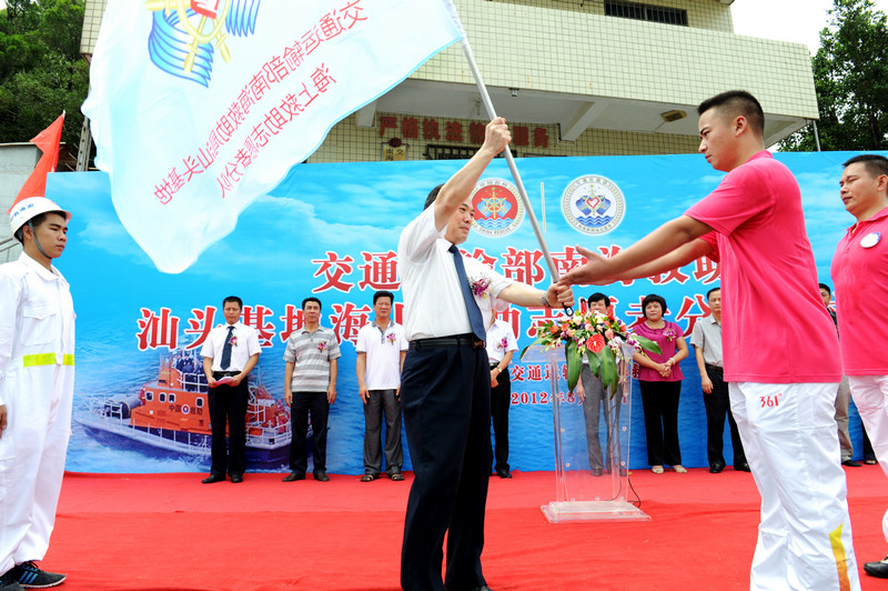 在当日的志愿者分队成立仪式现场,南海救助局副局长汤忠法将志愿者旗帜和证书交给志愿者,他们在旗下庄严地宣誓,正式成为光荣的海上救助志愿者。来自交通运输部南海救助局、汕头市团委、汕头市应急办公室、南澳县政府、汕头海事局、汕头市海洋与渔业局、汕头市公安边防支队船艇大队等13家单位的嘉宾出席了成立仪式。仪式结束后,驻汕头基地的近海快速救助艇“华英392”艇及救助橡皮艇“南海救501”还进行了海上救助演练,刚成立的海上志愿者分队3名成员与专业救助人员通力协作,成功救助2名模拟落水人员,展示出了汕头海区“专群结合”的综合救助能力。