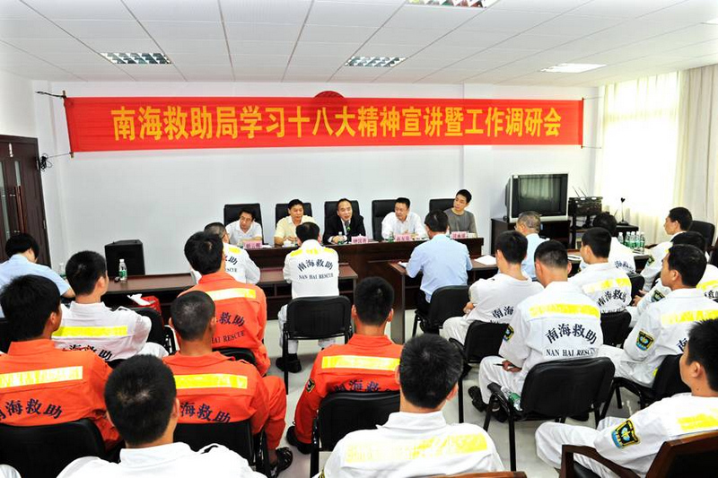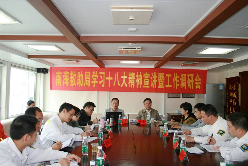 12月10日至14日,南海救助局学习党的十八大精神宣讲活动全面展开,由局领导率队组成的3个宣讲组分赴基地、船舶,举行了7场宣讲会,将我局学习贯彻十八大精神推向一个新的高潮。