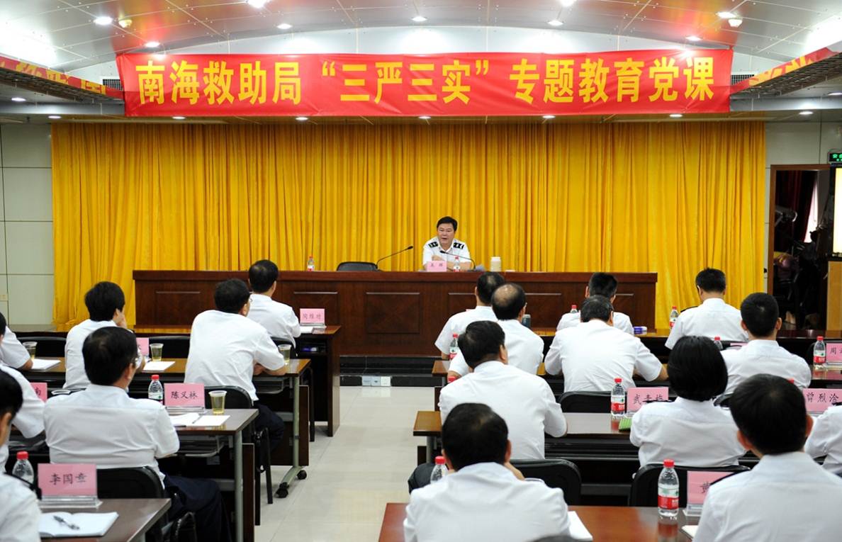 6月5日上午,南海救助局以视频会议形式举行“三严三实”专题党课报告会。局党组吴辉书记以“践行‘三严三实’,努力做一名促进事业发展的好干部”为题,为党员领导干部讲专题党课,并对全局开展“三严三实”专题教育作动员部署。林志豪局长主持会议。局领导班子成员、广州地区处级以上干部、机关全体党员干部和各基地主要负责人、救助科长等60余人在主会场参加学习,各二级单位干部职工在分会场听课。