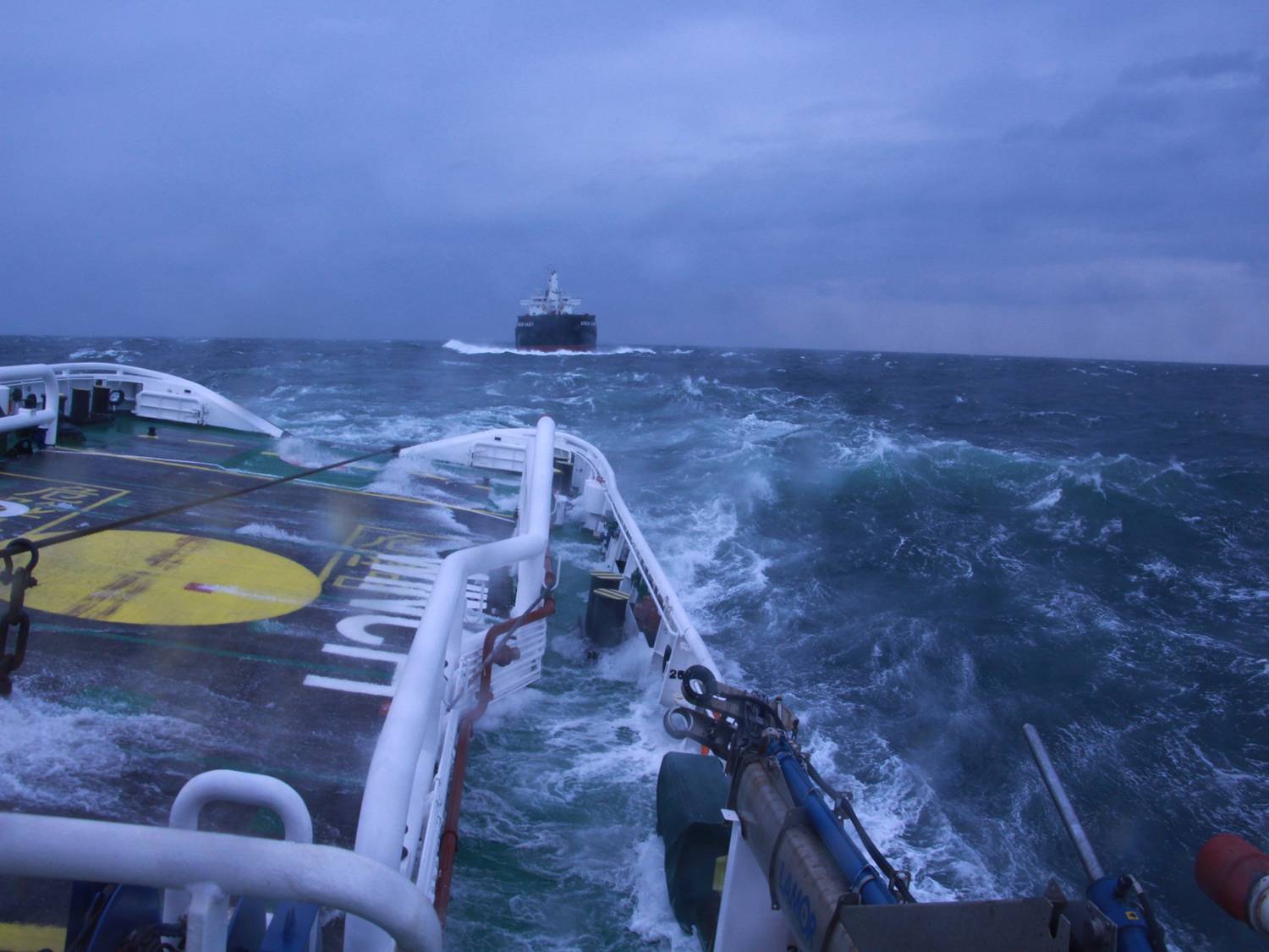 4日下午15时许,一艘名“远大668”的工程船在湛江港东头山9号锚地发生主机故障,时值台风过境,恐有不测,需要紧急救助。接报后,“南海救202”轮迅速出动,顶着12级大风紧急驰援。到现场救助人员发现,涉险工程船已经坐浅,仅露出部分船体,并未发现遇险人员。救助人员随即在附近开展搜救工作。经多方了解,确认船上7名船员已穿救生衣游水上岸,其中1人失去生命体征。“南海救202”轮随即结束搜寻,迅速投入其它救助行动。